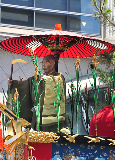 御神体の人形は「芦刈」の物語に登場する夫・老翁の姿が表されており、鎌と芦を手に芦原に立つ。現在保存されている人形の頭(御頭)には、鎌倉時代に活躍した仏師・運慶の子とされる康運の名と天文6年(1537)の銘が残る。また、古衣装も山鉾最古のもので重要文化財に指定されている。