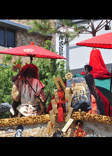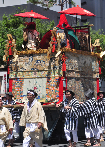 修験道の開祖・役行者(えんのぎょうじゃ)が一言主神を使って奈良の葛城山と大峰の間に石橋をかけたという逸話に由来。役行者は庶民の中に入って医療などにつとめた僧で、古くから民衆に人気があった。錫杖を持って座る役行者と、鬼の姿で手に斧を持つ一言主神、女性の姿で輪宝を持つ葛城神の三体を御神体としており、人形の数が多いため山のサイズも祇園祭最大級のものとなっている。