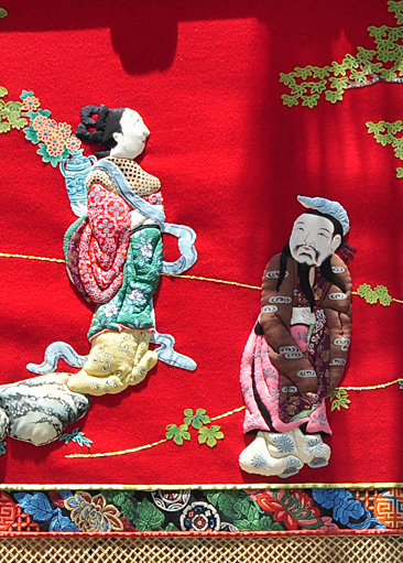 懸装品は全て山の趣向に合わせて中国風に統一されており、前掛は長寿のお祝いの際に贈られる縁起物「慶寿裂(けいじゅぎれ)」(中国・明時代のものの復元品を使用)他にも随所に中国の縁起物の意匠が取り入れられている。