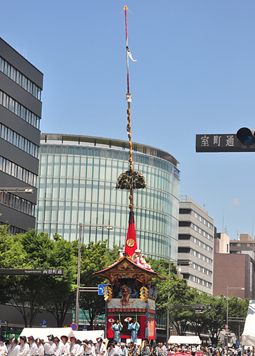 かつては長刀鉾同様に生稚児を乗せていたが、昭和4年(1929)以降は稚児人形「三光丸」に変わった。巡行中は生き稚児同様、鉾の上で稚児舞を舞ってみせてくれる。