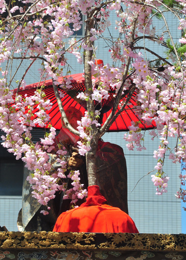 山を飾る桜の造花には、戸口に挿しておくと家に悪事を入れない利益があるとされ、粽と共に御守りにされる。