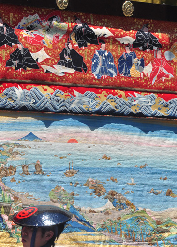 胴懸は天保2年(1831)制作の色鮮やかな日本三景を描いた綴織。